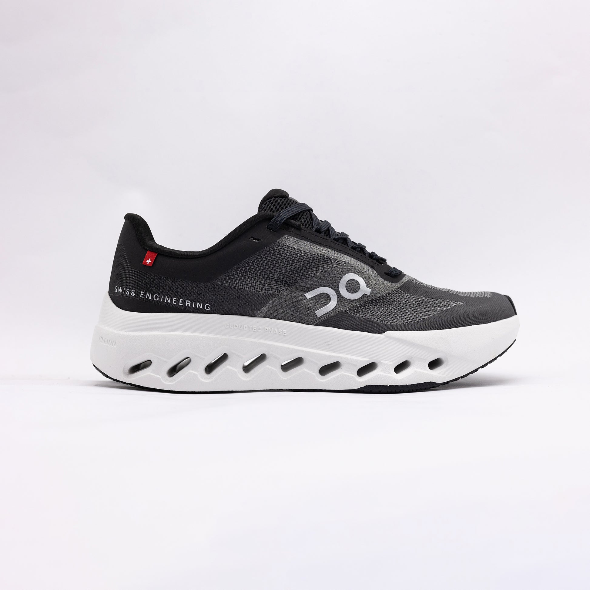 الوصف: صُممت أحذية الجري عالية الأداء هذه لتوفير أقصى قدر من التوسيد واستعادة الطاقة. تتميز بجزء علوي شبكي مسامي باللونين الأسود والرمادي الداكن ، مع شعار On Running (OC) أبيض كبير على الجانب. يتميز الحذاء بسهولة التعرّف عليه بفضل نعله الأوسط السميك والمصمم بتقنية CloudTec ، والذي يتميز بثقوب بيضاوية مجوفة ومبالغ فيها لتوفير توسيد فائق. يحمل الكعب شعار "SWISS ENGINEERING" وعلمها، مما يُبرز جودته وتصميمه التقني.