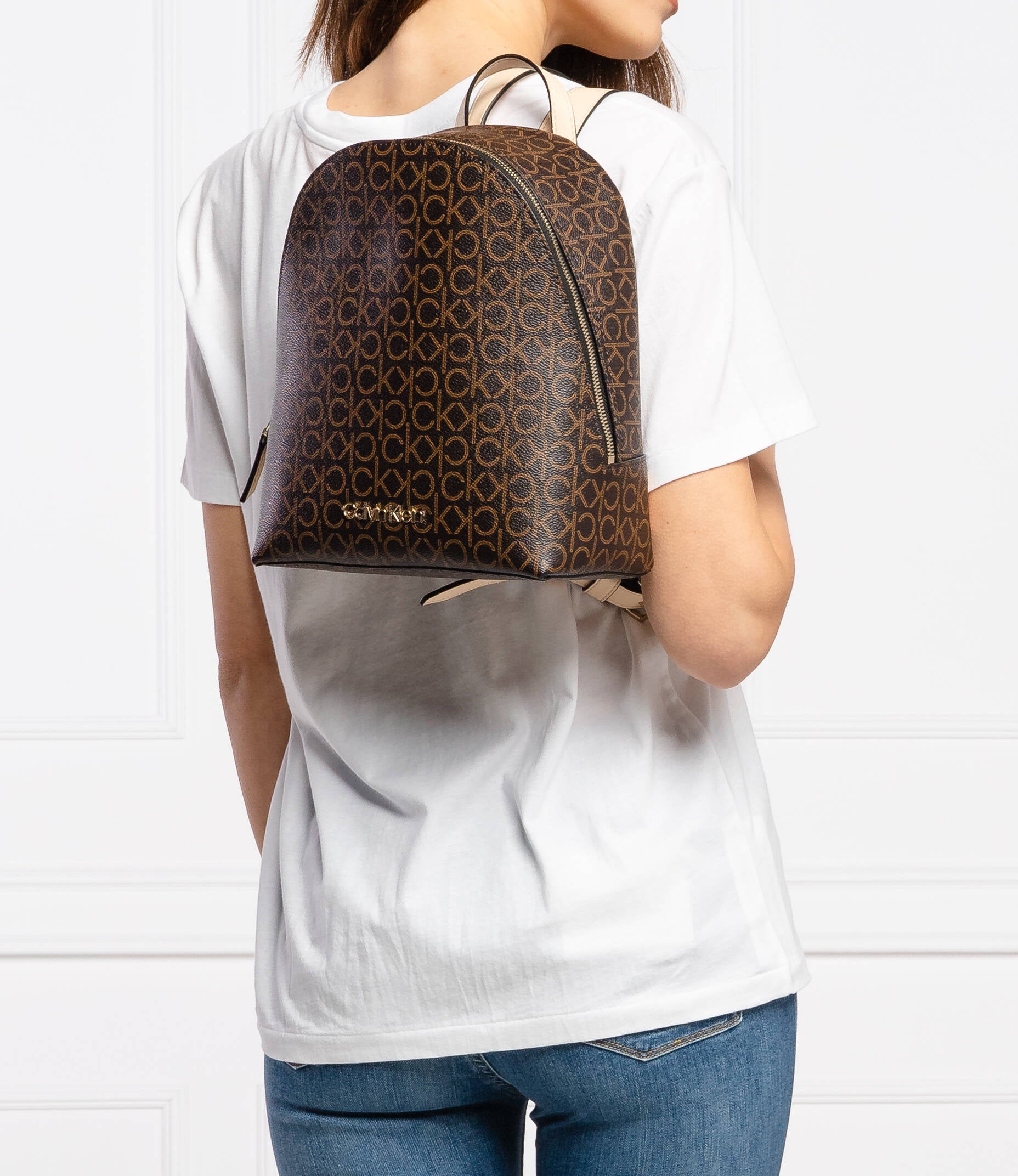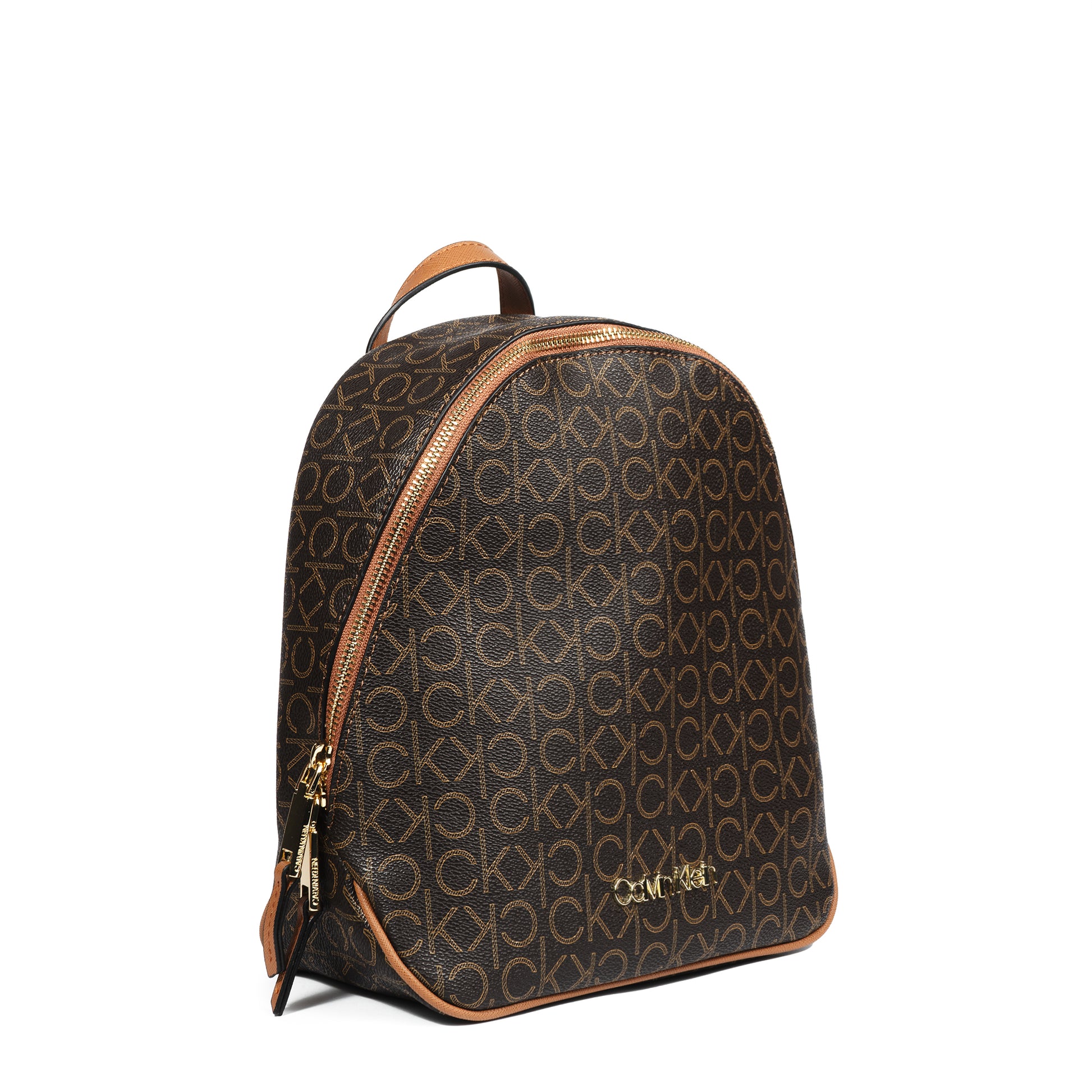Calvin Klein Mono Backpack – Brown Signature Faux Leather