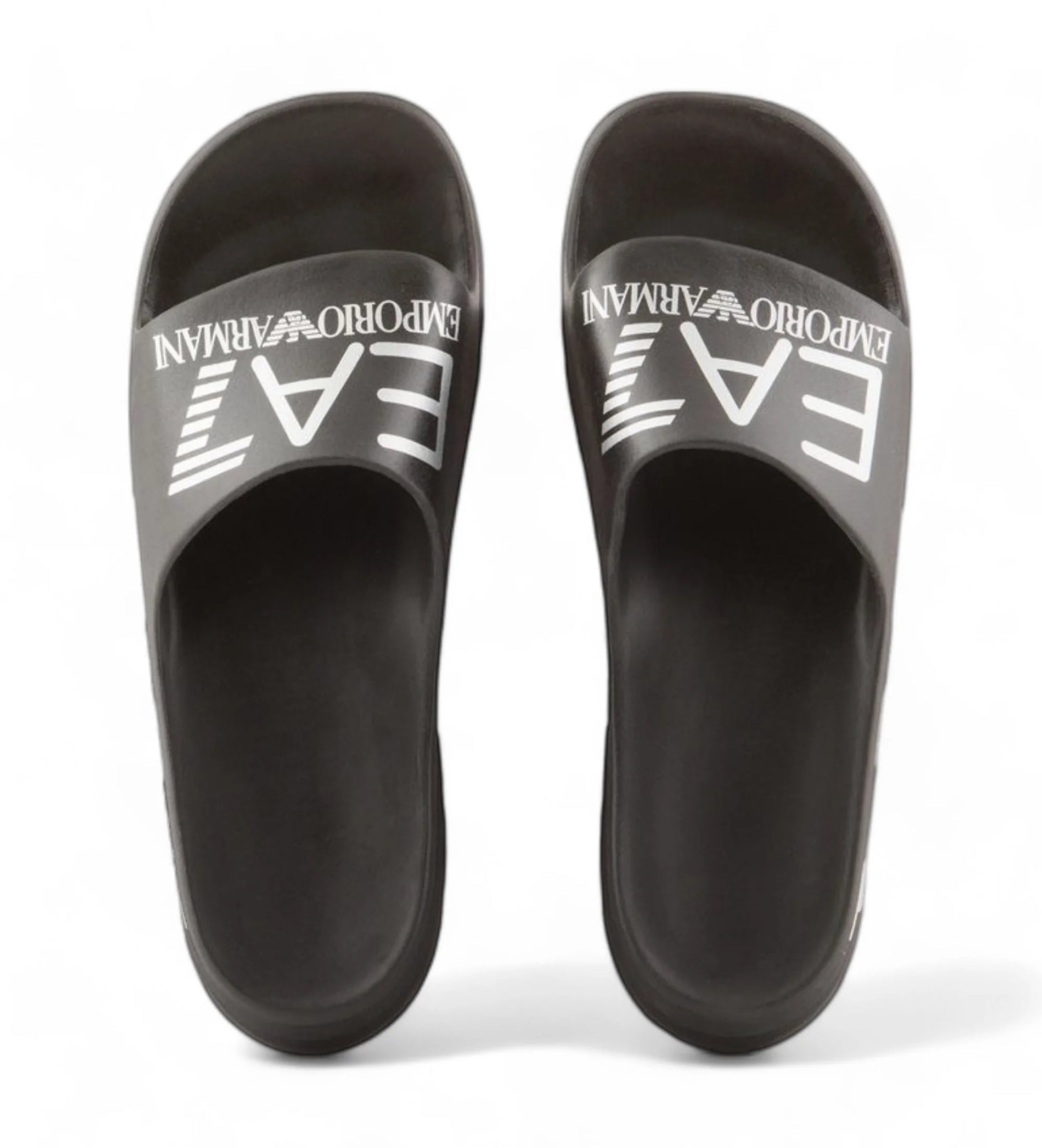 New Crusher Distance slides with an oversized band featuring an oversized EA7 logo. the versatile style, embellished with the Eagle logo on the midsole, are perfect for the pool or beach and for taking with you to the gym.