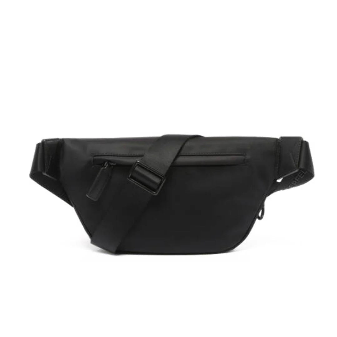 The minimalist design is elevated by the iconic Karl Lagerfeld graphic logo on the front, adding unmistakable attitude and designer flair. The adjustable strap allows for versatile styling — wear it around the waist, across the chest, or over the shoulder. A secure zippered main compartment keeps your essentials close and organized, while the compact size makes it perfect for festivals, travel, or daily wear.