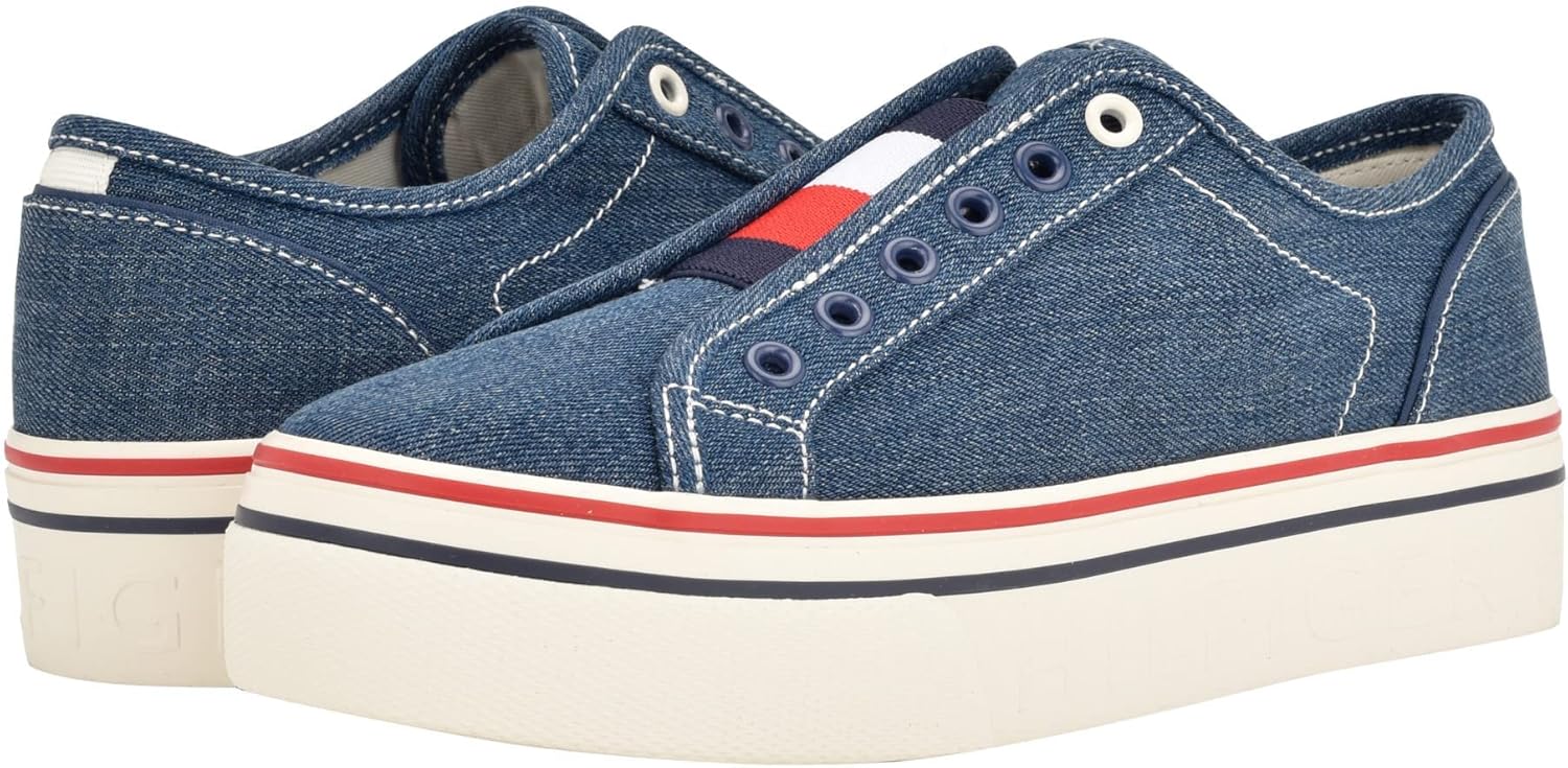 Step into effortless style with Tommy Hilfiger's Balie platform slip-on sneakers. Designed for the modern woman, these casual shoes feature a distinctive navy stripe multi colorway that pairs seamlessly with any wardrobe. The slip-on construction offers convenient all-day wear, while the platform sole delivers both comfort and a subtle height boost. Crafted with Tommy Hilfiger's signature quality, these sneakers balance contemporary design with timeless appeal, making them an essential addition to your casual footwear collection.