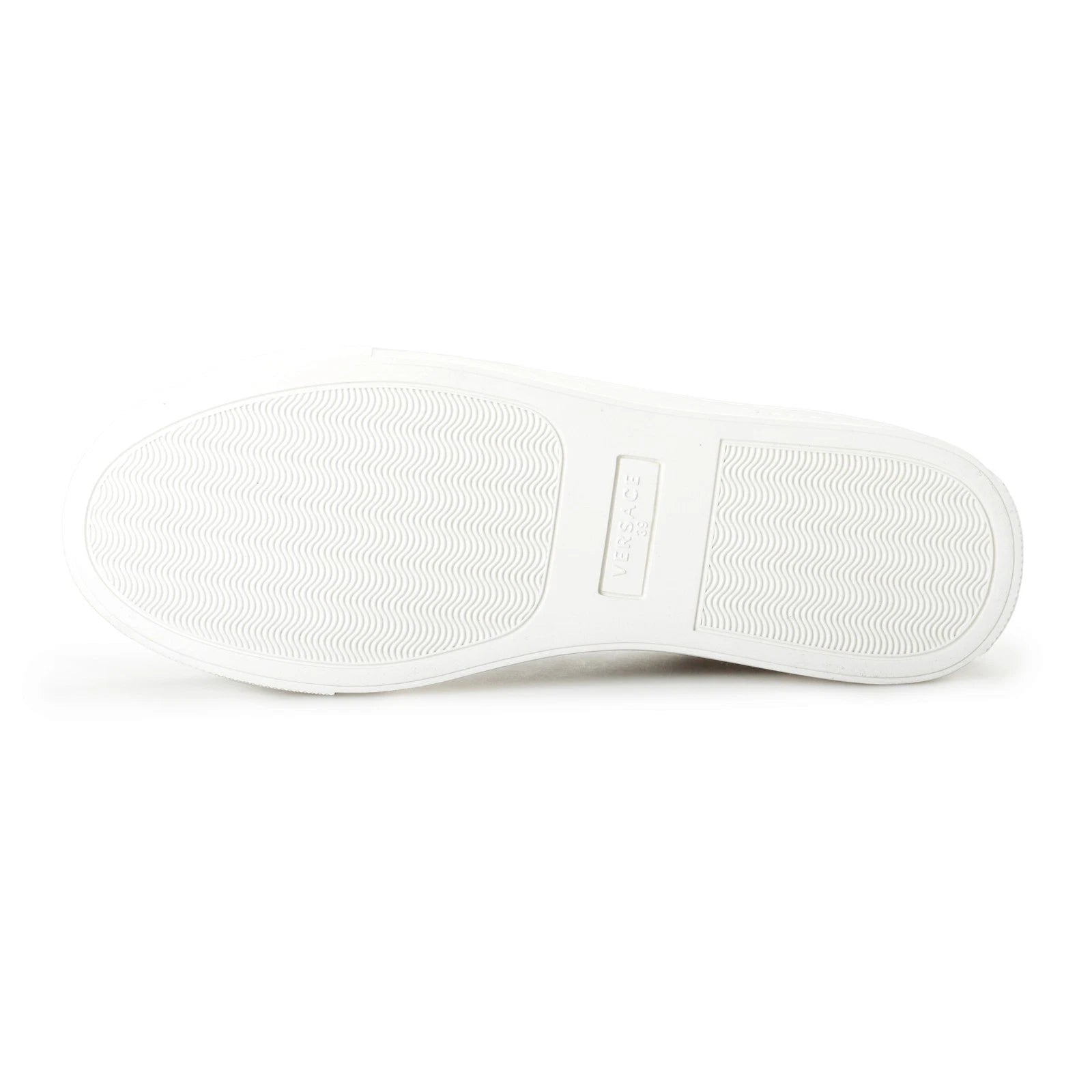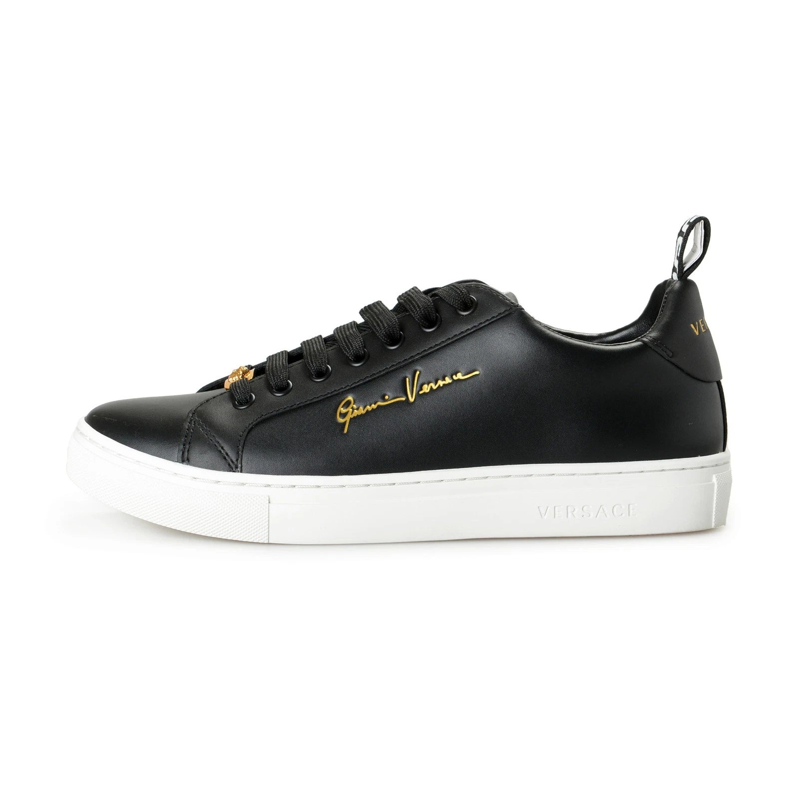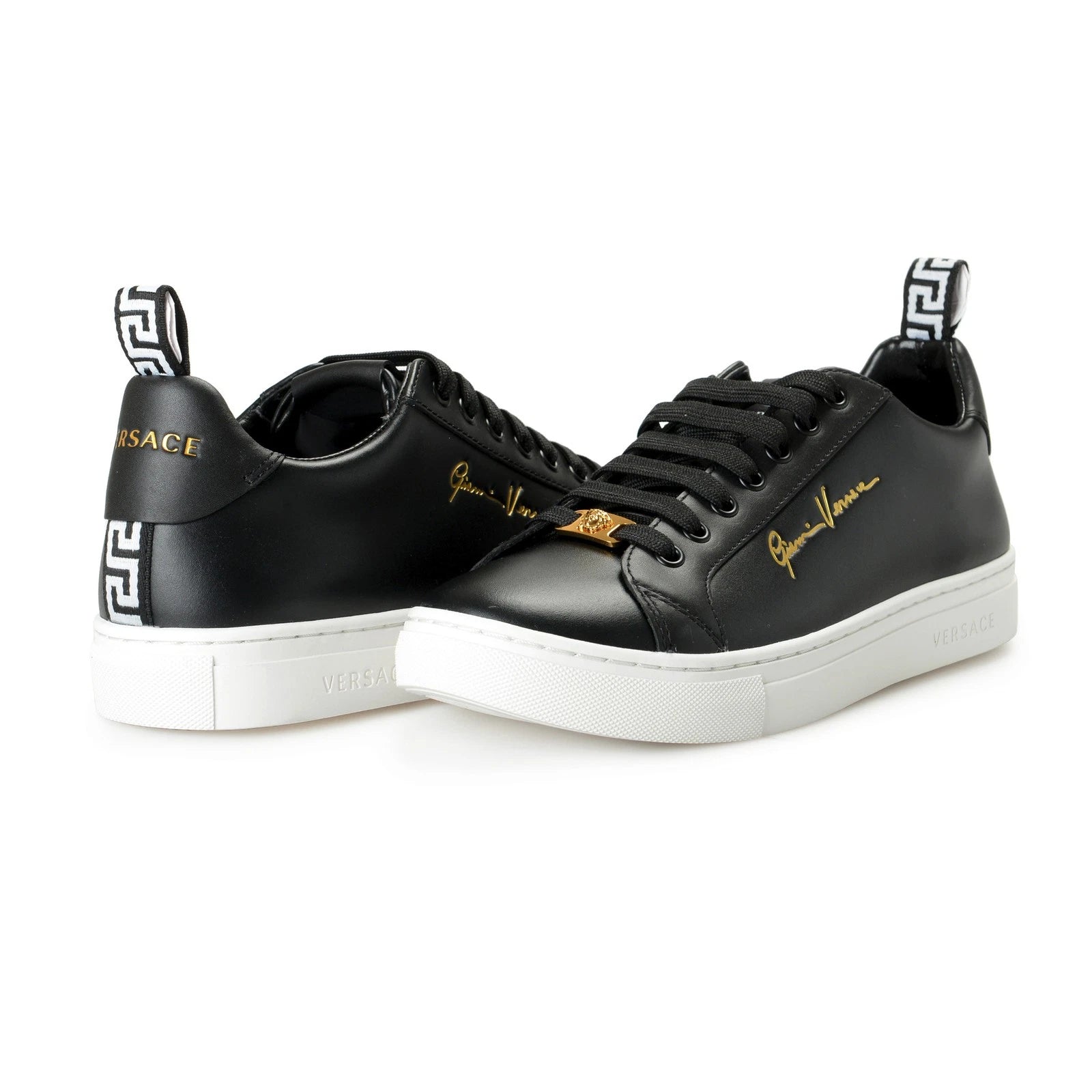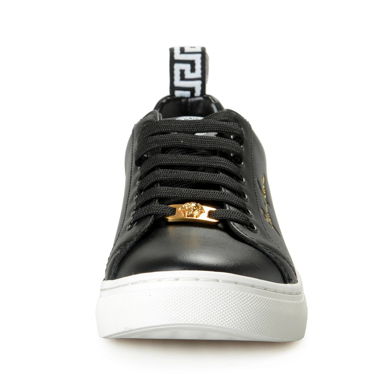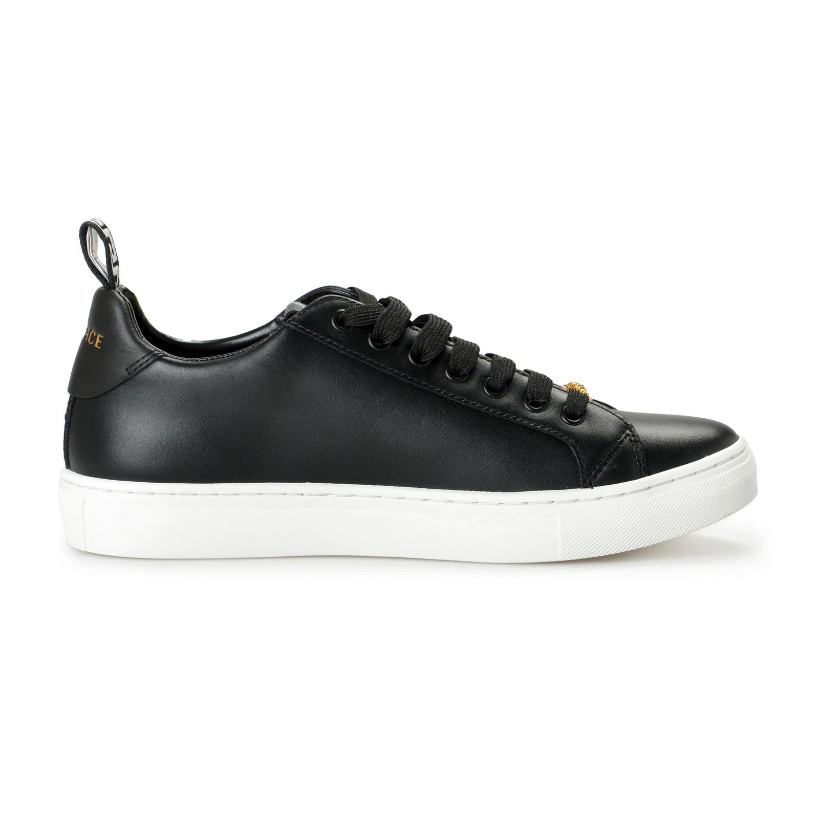 This is authentic Versace Women's Black Leather Medusa Logo Sneakers Shoes